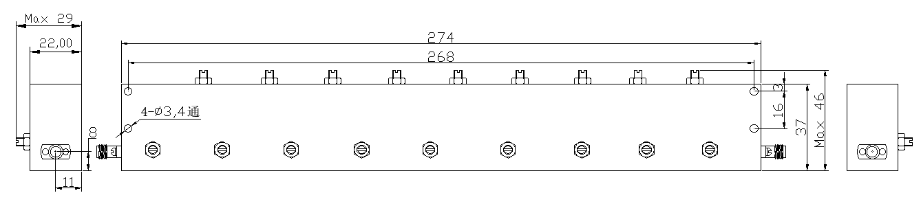 12 尺寸 274*22*37mm(外形公差±0.3mm)(不含调螺尺寸)