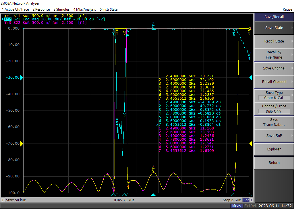 3 通带频率 DC -2400MHz , 2780-6000MHz
