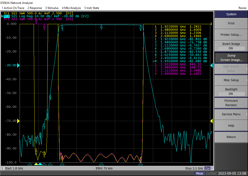 | 3 | 抑制 | ≥75dB@700-1750MHz; ≥40dB@1750-1875MHz ≥75dB@2112-2690MHz; ≥75dB@2690-5000MHz |