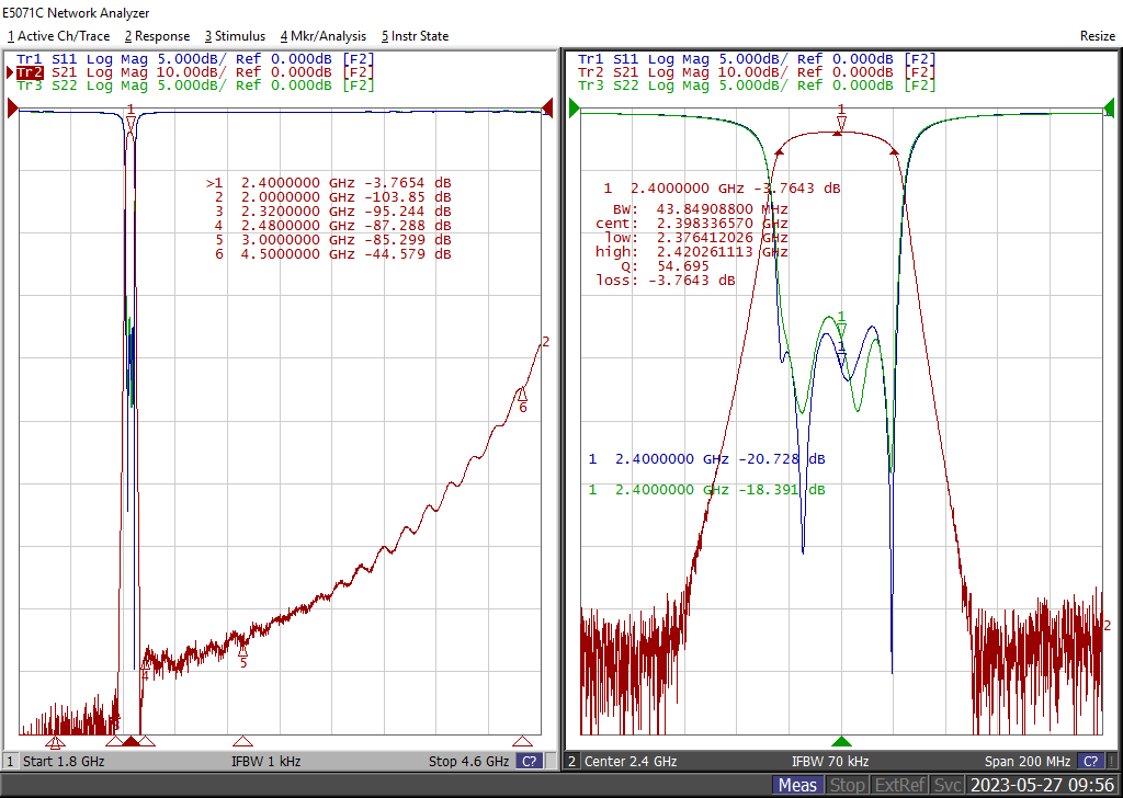| 4 | 带外抑制 | ≥80@2480MHz-3000MHz;≥80@2000MHz-2320MHz ≥38@3000MHz-4500MHz |