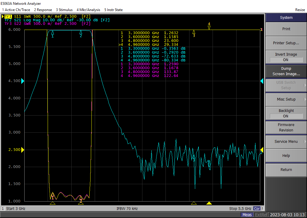 3 带外抑制 65dB@4800-4960MHz 65dB@3300-3600MHz