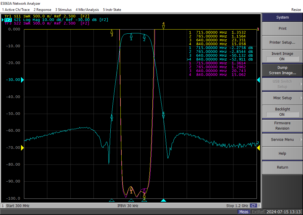 | 3 | 带外抑制 | ≥40dB@DC-640MHz ≥40dB@840-1500MHz |