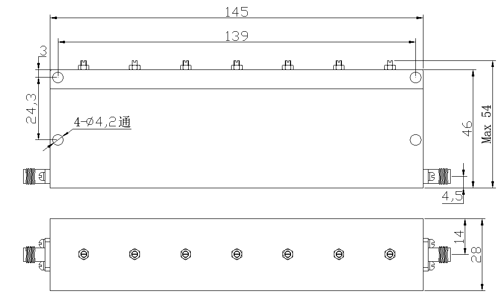 | 12 | 尺寸 | 145*46*28mm(外形公差±0.3mm)(不含调螺尺寸) |