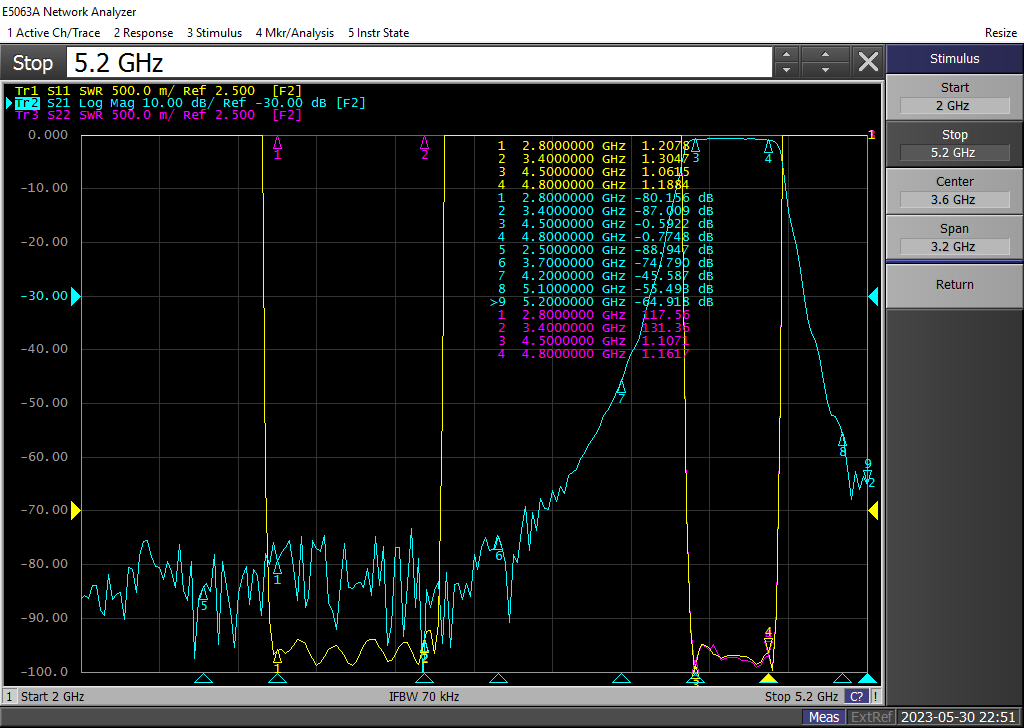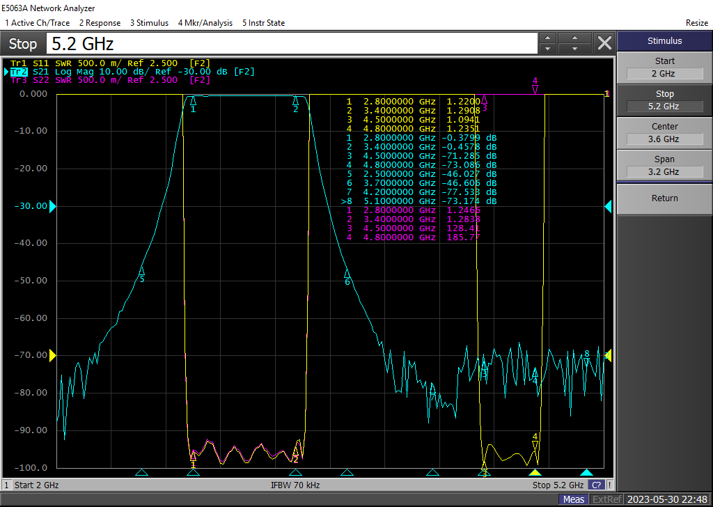 | 2 | -3.0dB带宽 | ≥600MHz(2800-3400MHz) | ≥300MHz(4500-4800MHz) |
