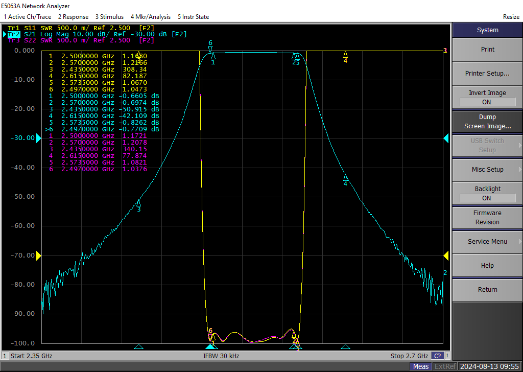 | 4 | 带外抑制 | ≥40dB@DC-2435 MHz;≥40dB@2615-4000 MHz |