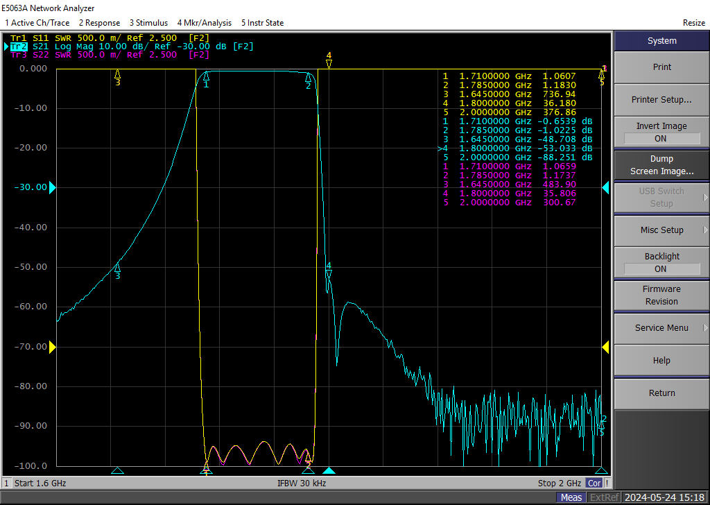 | 1 | 通带频率 | 1710-1785MHz |