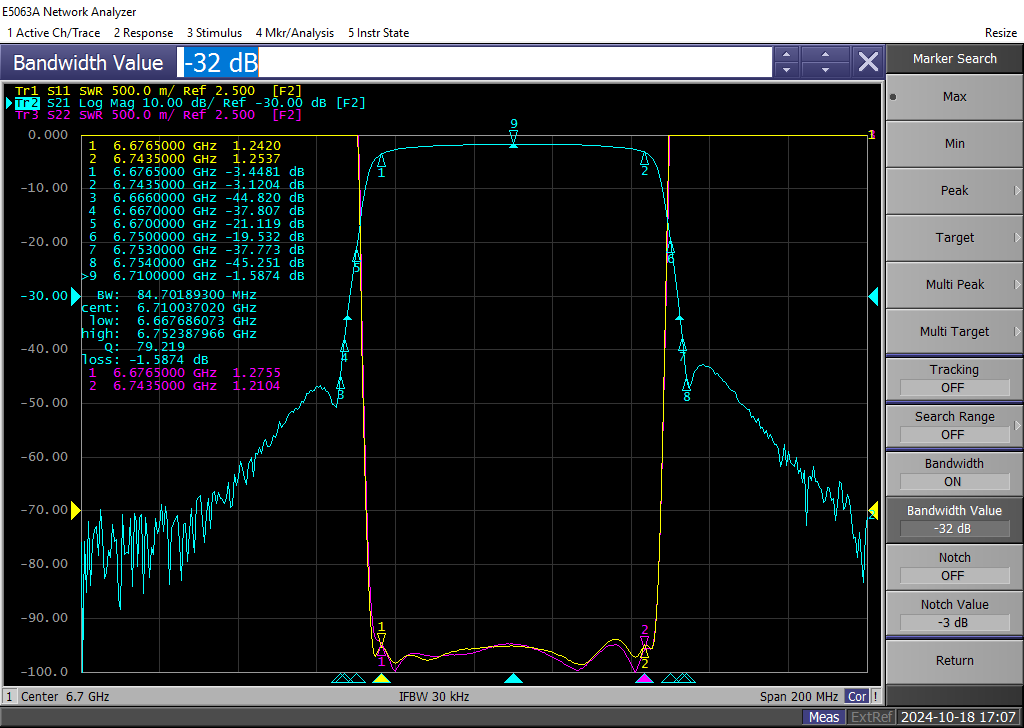 | 5 | 32dB带宽 | ≤6.710GHz±43MHz |